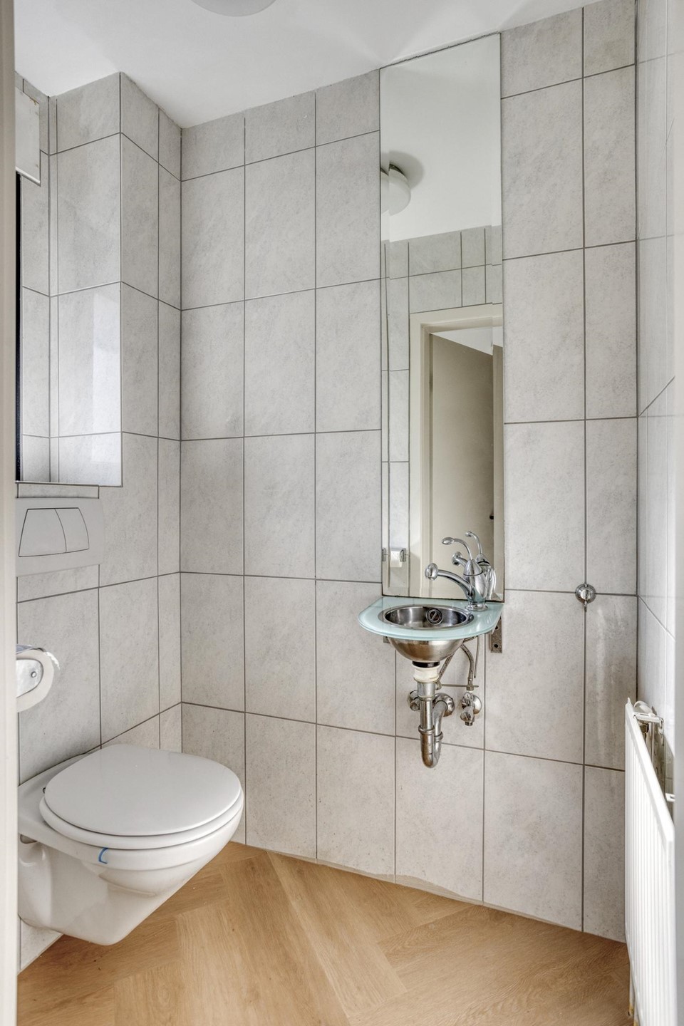 Bij binnenkomst treft u een royale hal met een stijlvolle kastenwand en een separaat gastentoilet.