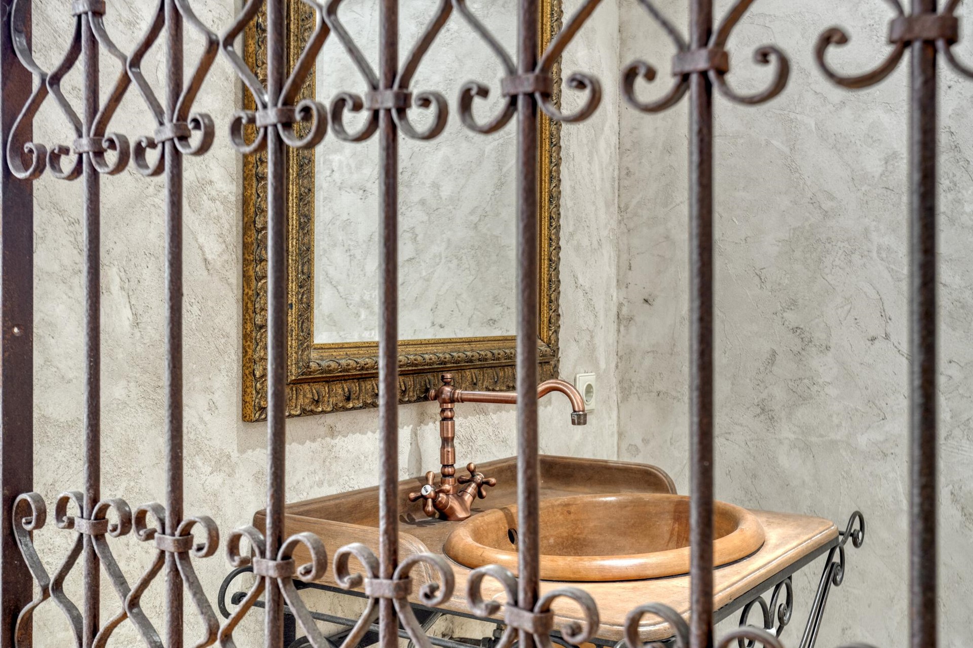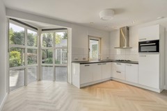 De aparte *leefkeuken* is voorzien van hoogwaardige inbouwapparatuur en afgewerkt met luxe materialen.